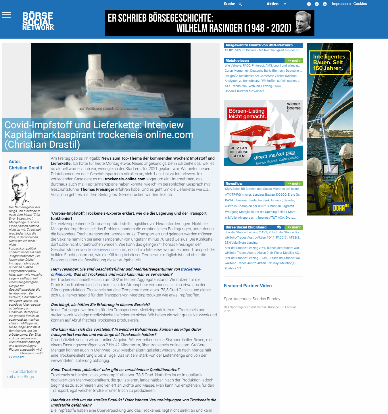 „boerse-social.com“ Covid-Impfstoff und Lieferkette: Interview Kapitalmarktaspirant trockeneis-online.com (Christian Drastil)